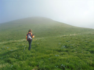 Llegando al Pico de Yésero entre neblinas.